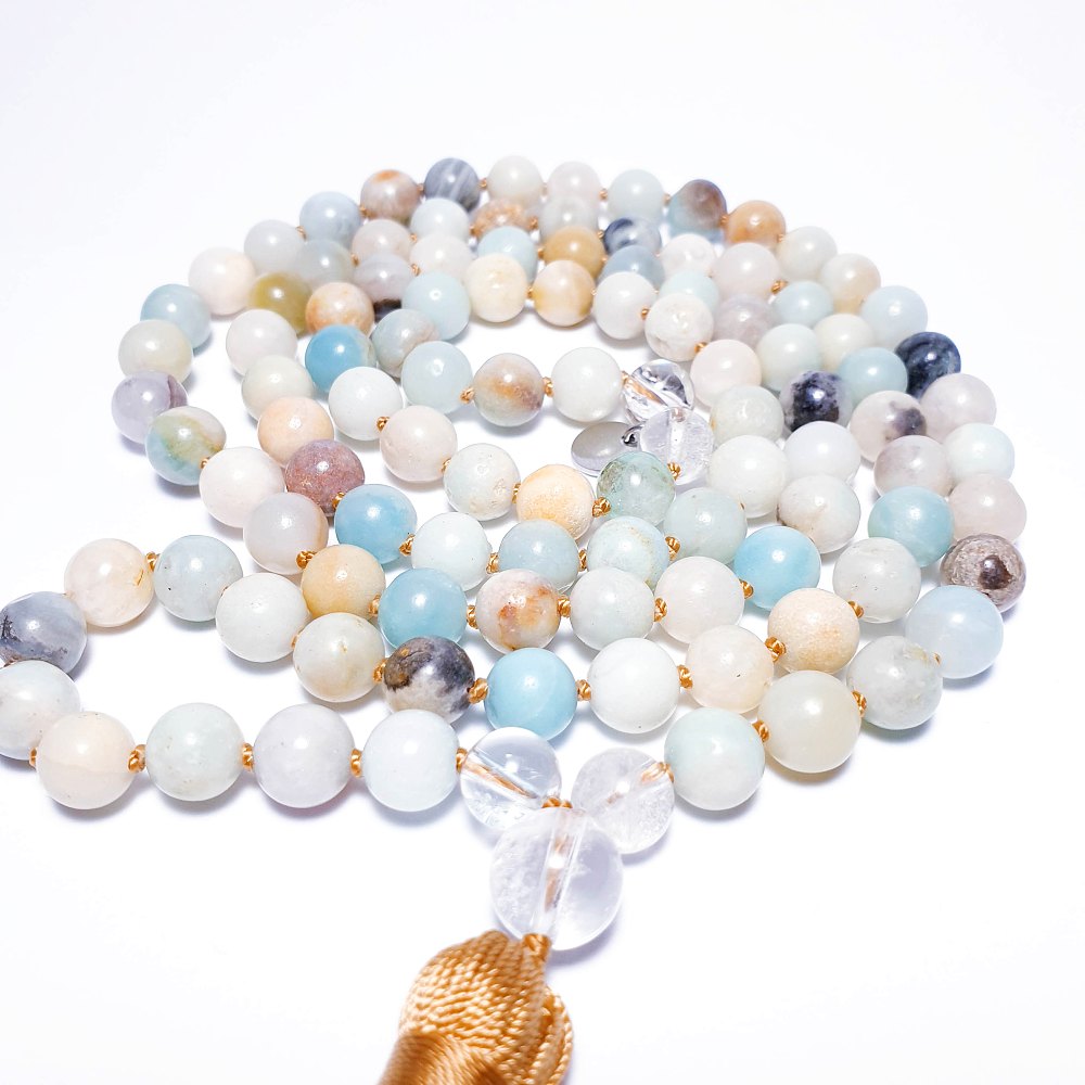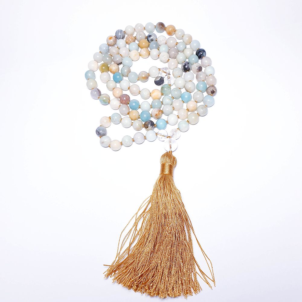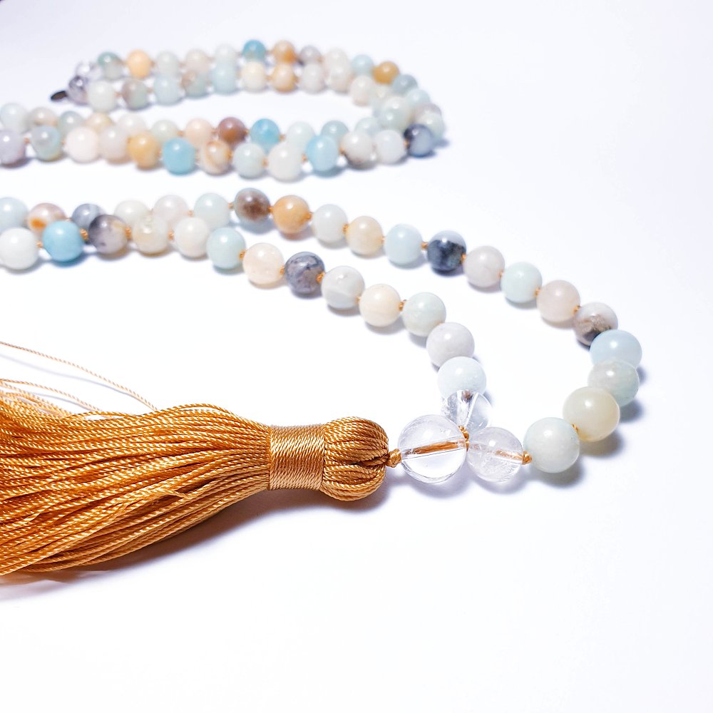 Mala se 108 korálky + 1 guru korálek a střapec.