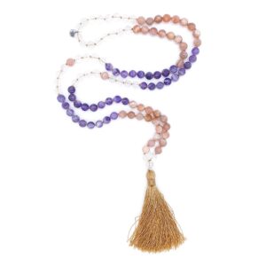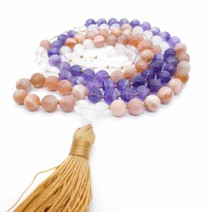 Ametyst, sluneční kámen a křišťál 8 mm – Japa Mála náhrdelník