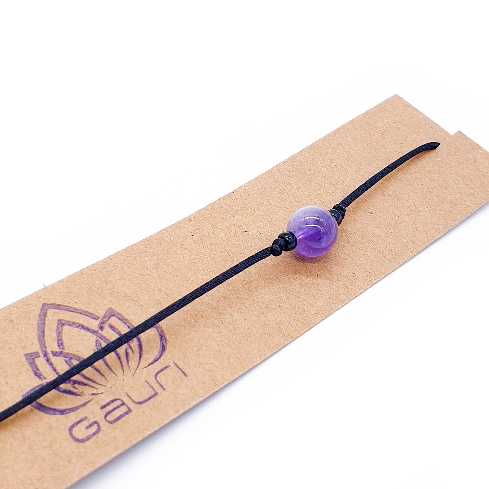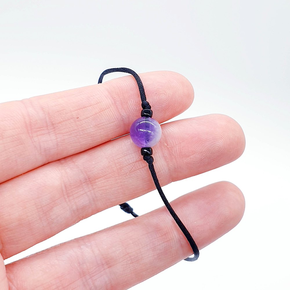 Jednoduchý a minimalistický provázkový náramek ze saténové šňůrky a minerálního korálku.