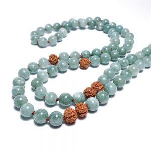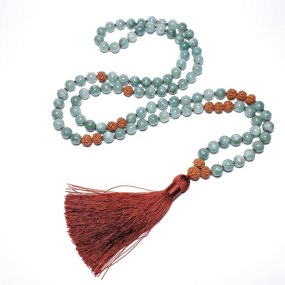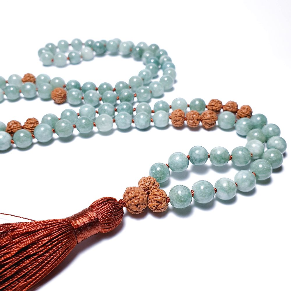 Barmský jadeit, rudraksha 8 mm – Japa Mála náhrdelník