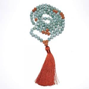 Náhrdelník Japa Mala se 108 korálky + 1 guru korálek a střapec.
