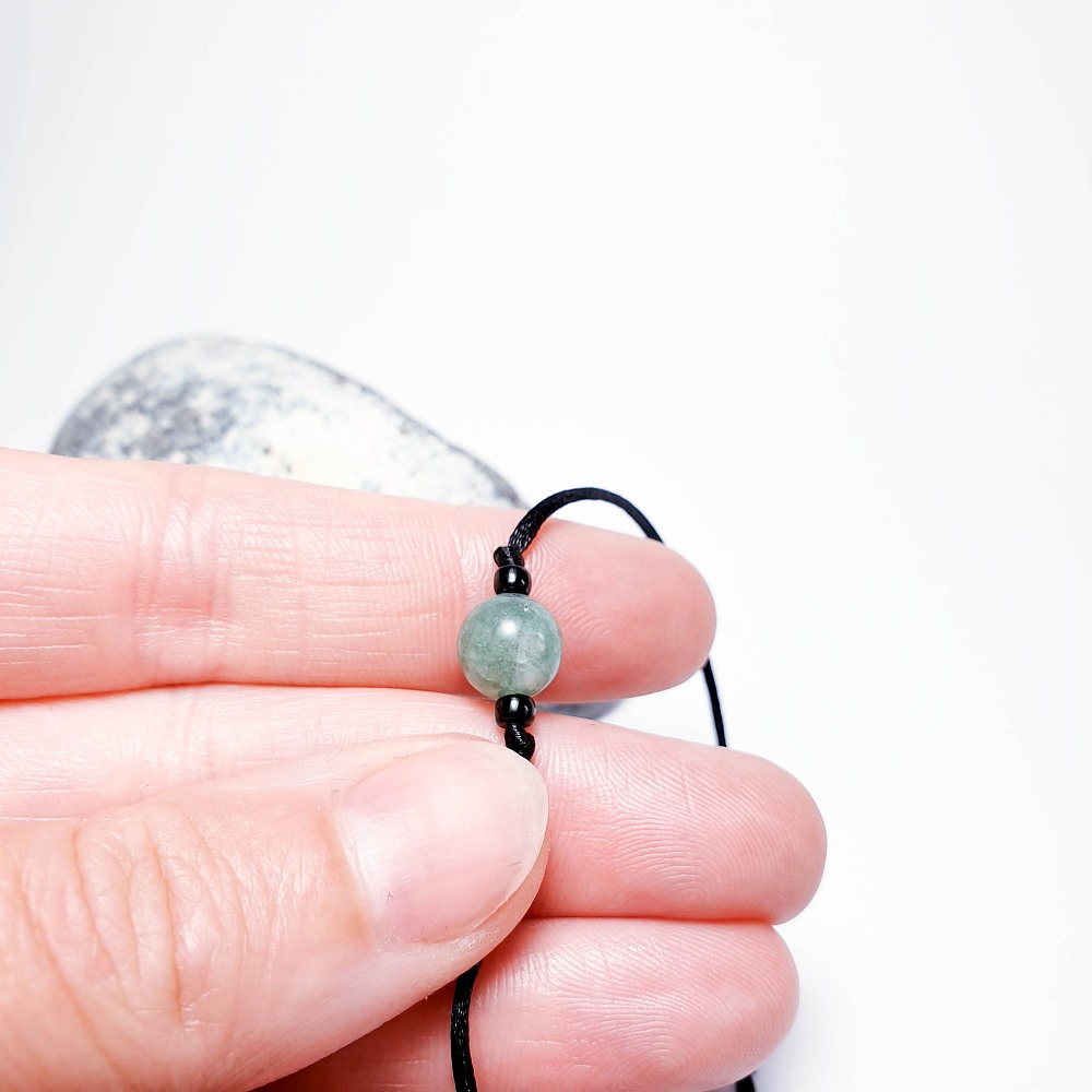 Jednoduchý a minimalistický provázkový náramek ze saténové šňůrky a minerálního korálku.