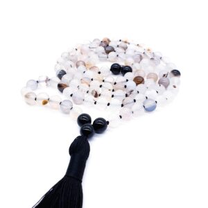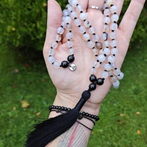 Náhrdelník Japa Mala se 108 korálky + 1 guru korálek a střapec.