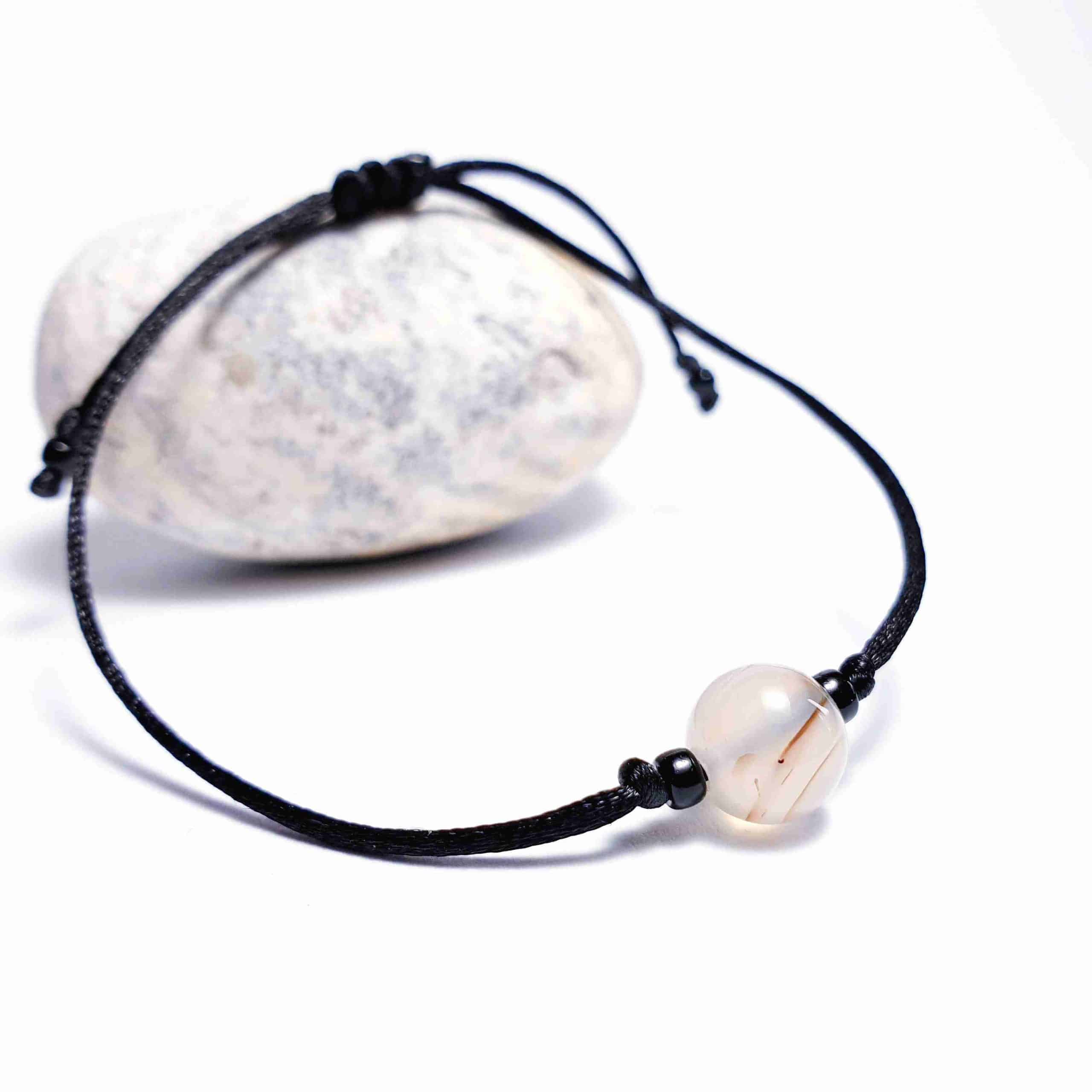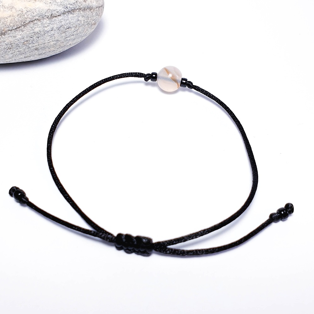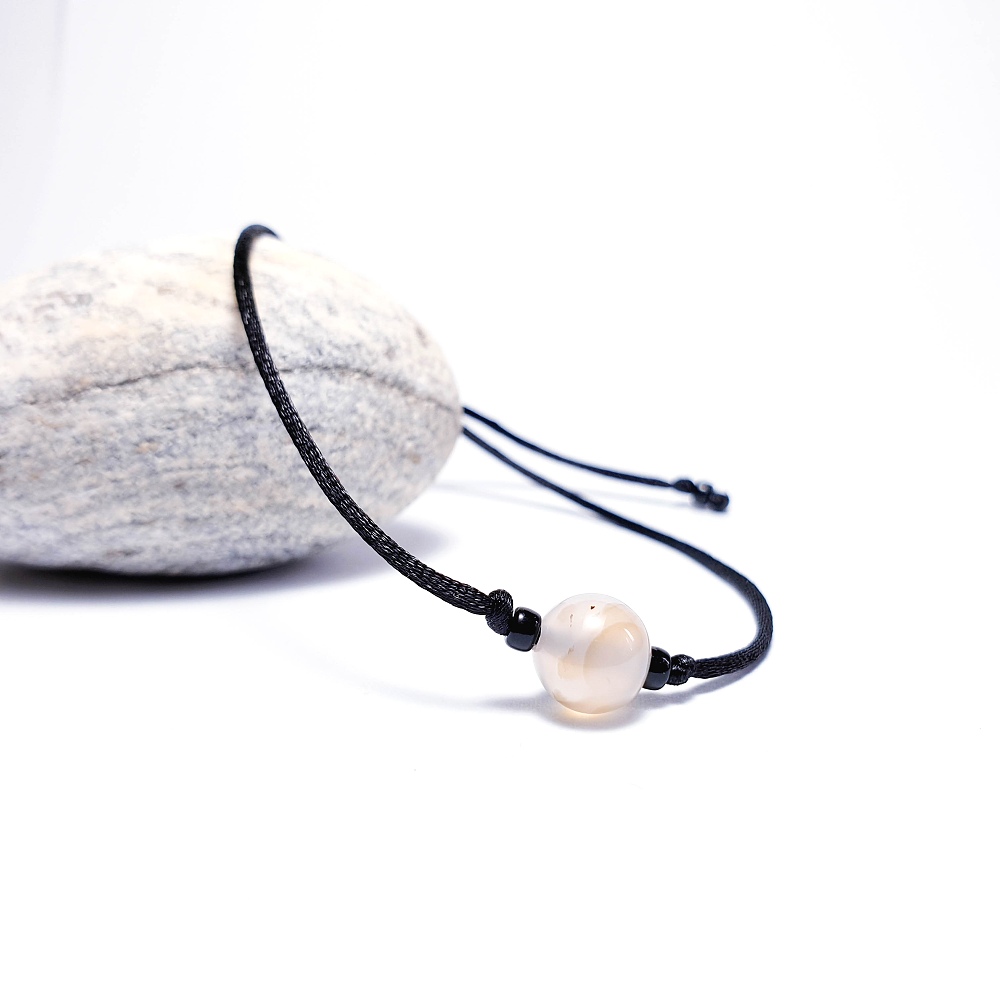 Jednoduchý a minimalistický provázkový náramek ze saténové šňůrky a minerálního korálku.