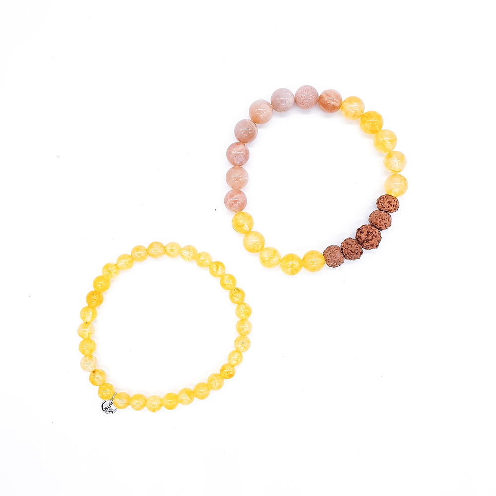 Citrín, sluneční kámen, rudraksha – 2 ks náramků