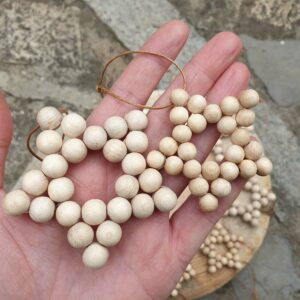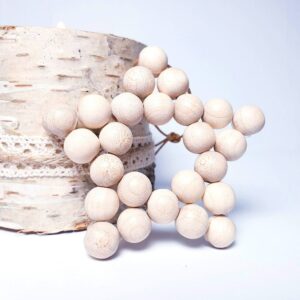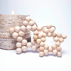 Jednotlivé korálky jsou ze světlého dřeva a jsou leštěné. Hvězdička je opatřena poutkem z voskované šňůry, které můžete v případě potřeby jednoduše odejmout.