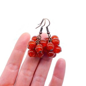 Originální náušnice z minerálů ve tvaru rybízu s karneolem, které vám dodají šmrnc a energii do každého dne!  Nechte se unést kouzlem přírody a rozjasněte svůj styl tímto originálním doplňkem!
