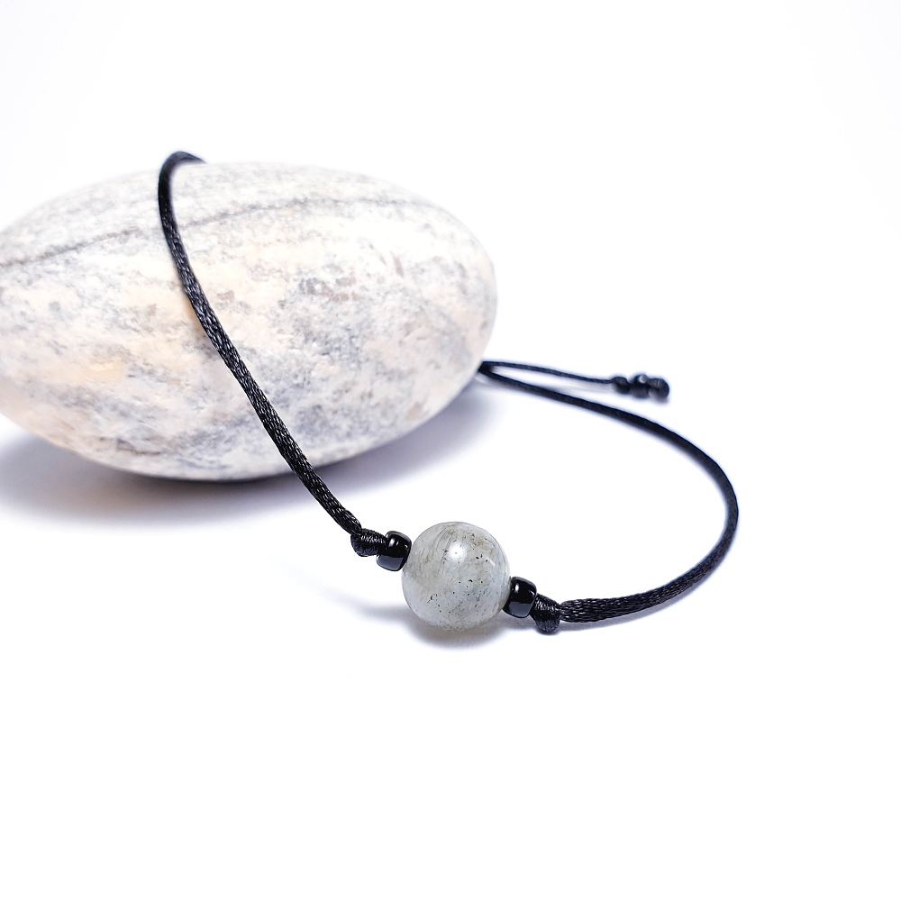 Jednoduchý a minimalistický provázkový náramek ze saténové šňůrky a minerálního korálku.