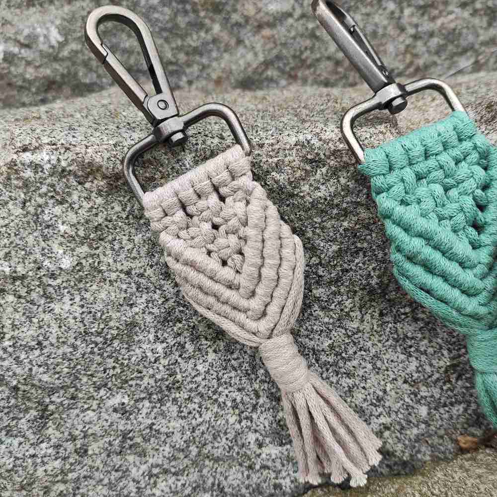 Ručně vyráběná macramé klíčenka. Originální módní doplněk v boho stylu. Ideální na klíče nebo k zavěšení na batoh či kabelku.
