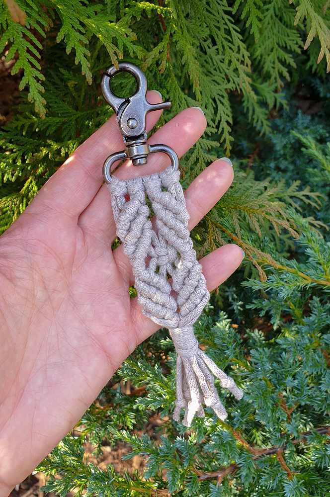 Ručně vyráběná macramé klíčenka. Originální módní doplněk v boho stylu. Ideální na klíče nebo k zavěšení na batoh či kabelku.