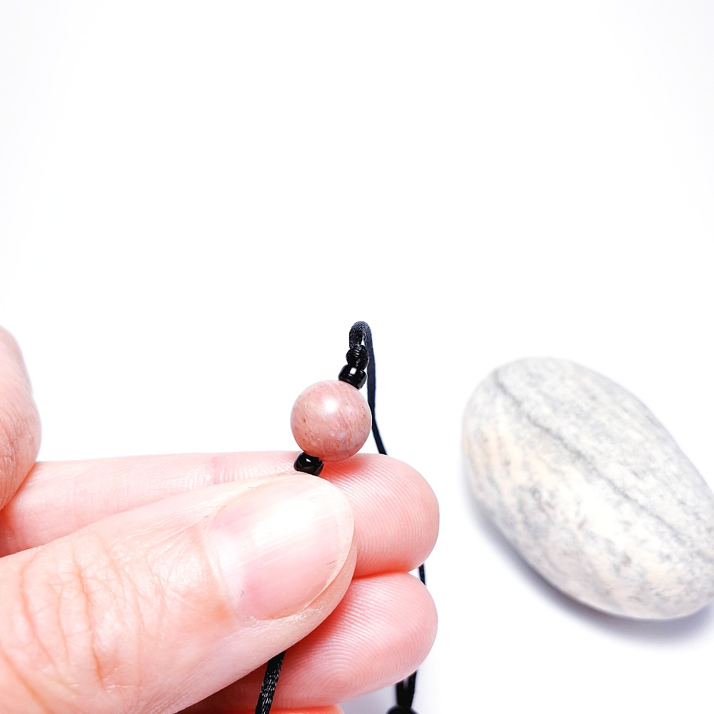 Jednoduchý a minimalistický provázkový náramek ze saténové šňůrky a minerálního korálku.