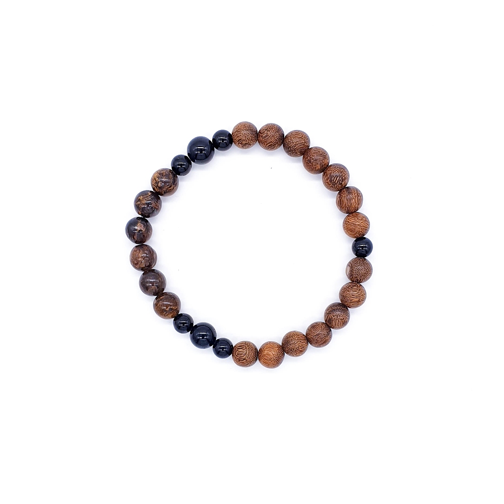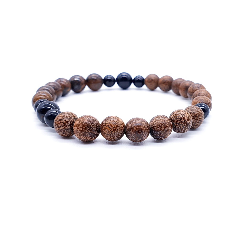 Santalové dřevo, turmalín, bronzit 8 a 6 mm – pánský náramek