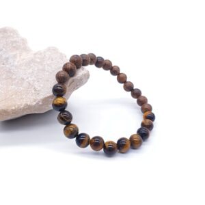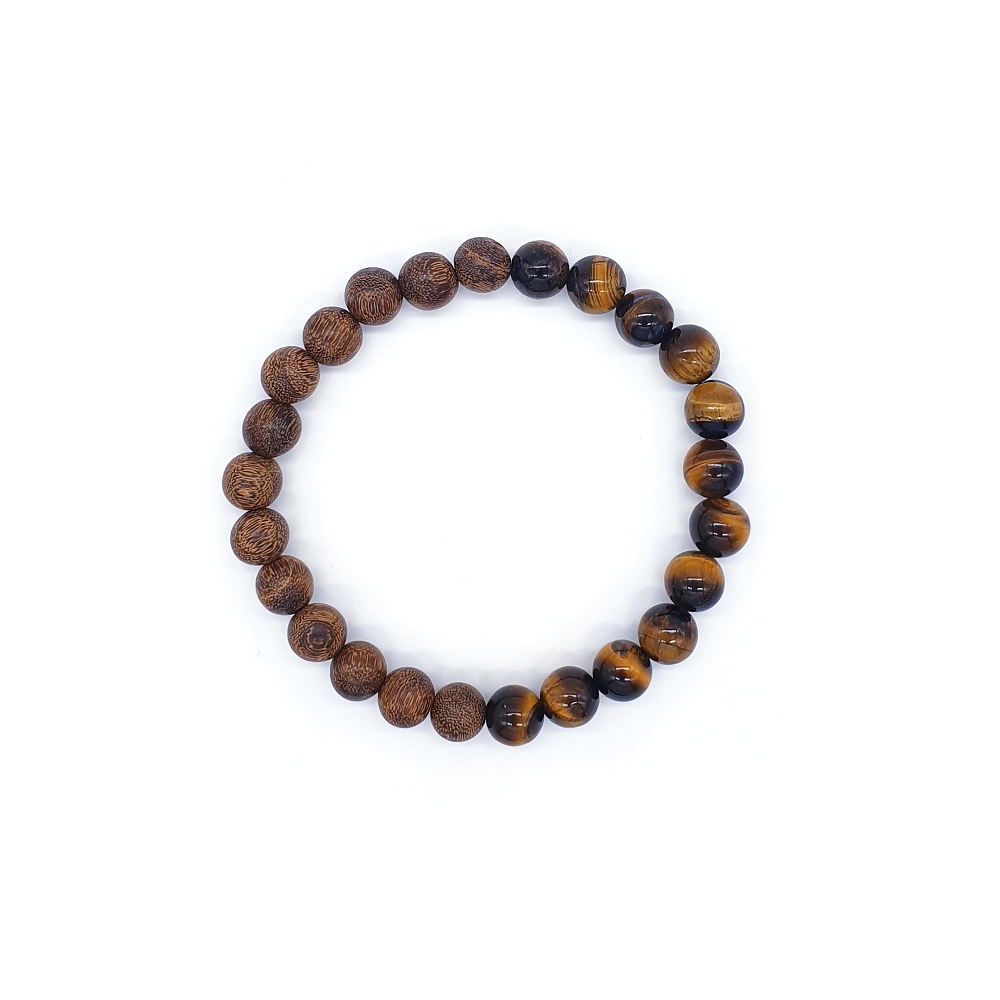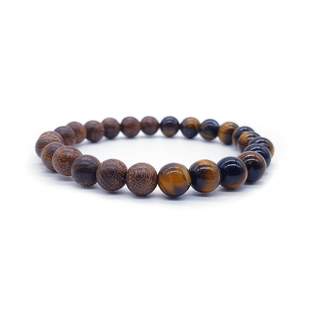 Santalové dřevo, tygří oko 8 mm- pánský náramek