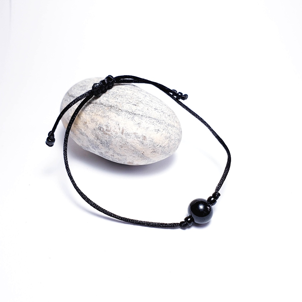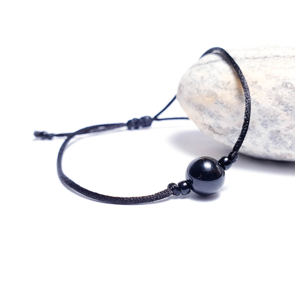 Jednoduchý a minimalistický provázkový náramek ze saténové šňůrky a minerálního korálku.