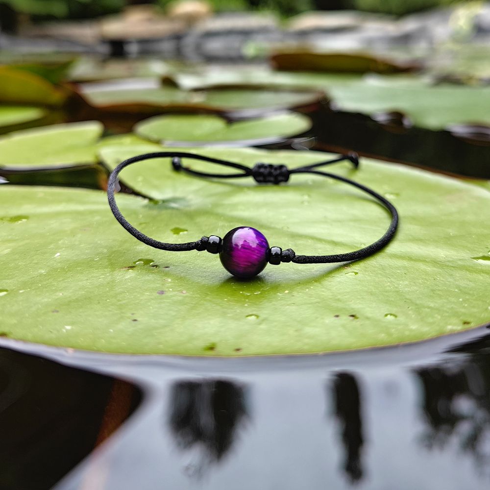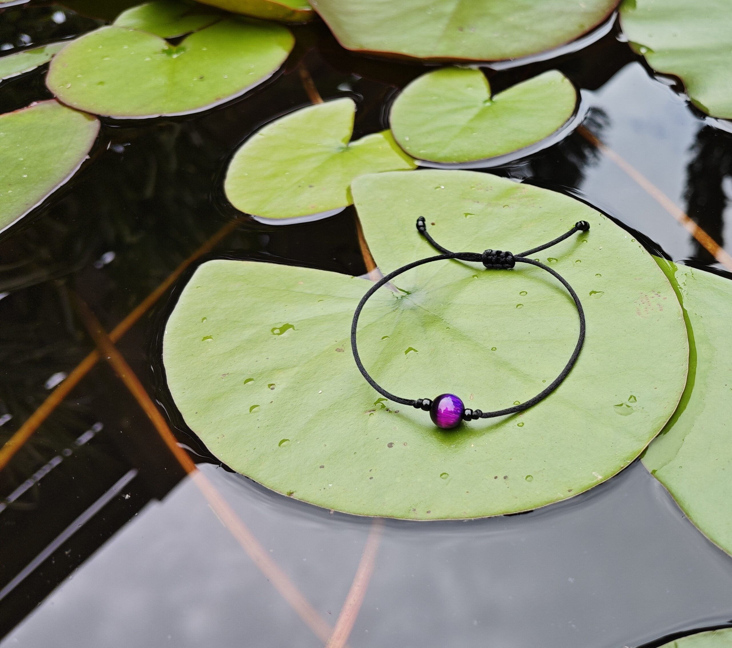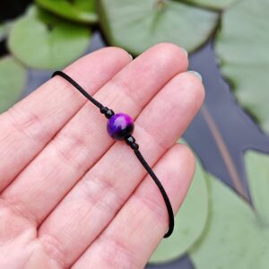 Jednoduchý a minimalistický provázkový náramek ze saténové šňůrky a minerálního korálku.